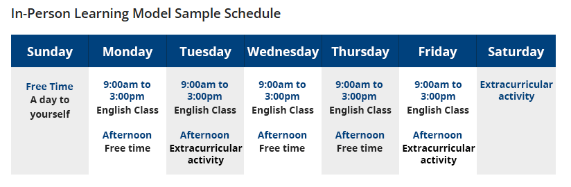 | 期間 | 3週間または4週間(月〜木曜、計20時間のレッスン) |
